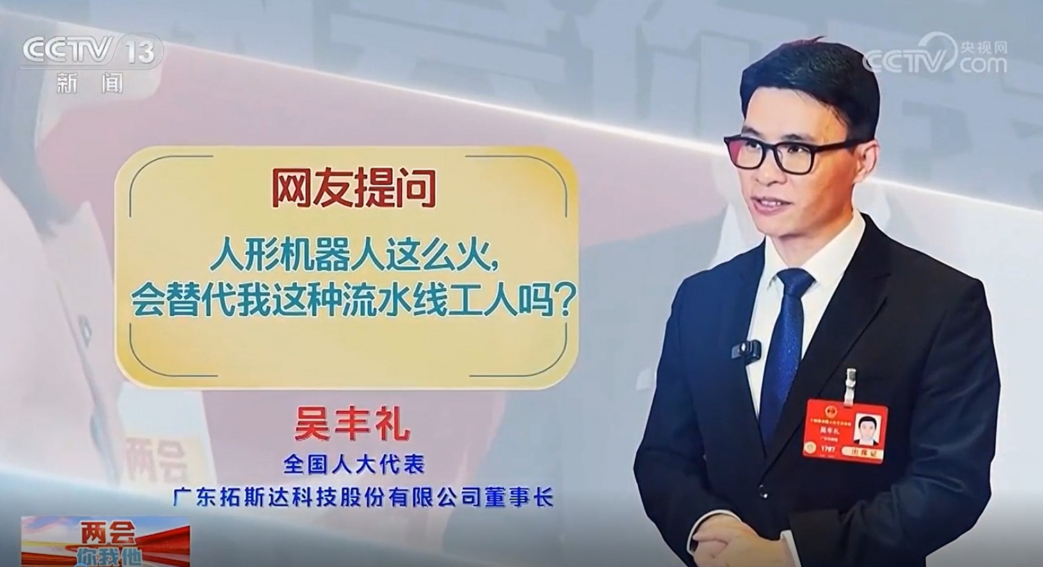 全国人大代表、拓斯达董事长吴丰礼:研发机器手,是希望制造业工人不再受伤